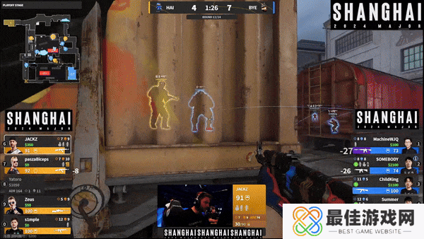 在紧张刺激的上海Major总决赛开打之前,由Yatoro、JACKZ、Zeus、pashaBiceps、s1mple组成的Team HAI和玩机器、somebody、周冠宇、summer、ChildKing组成的Team BYE为观众奉上了一场乐趣十足的表演赛。最终Team BYE以15-9比分拿下了表演赛胜利。让我们看看都有哪些精彩镜头吧。