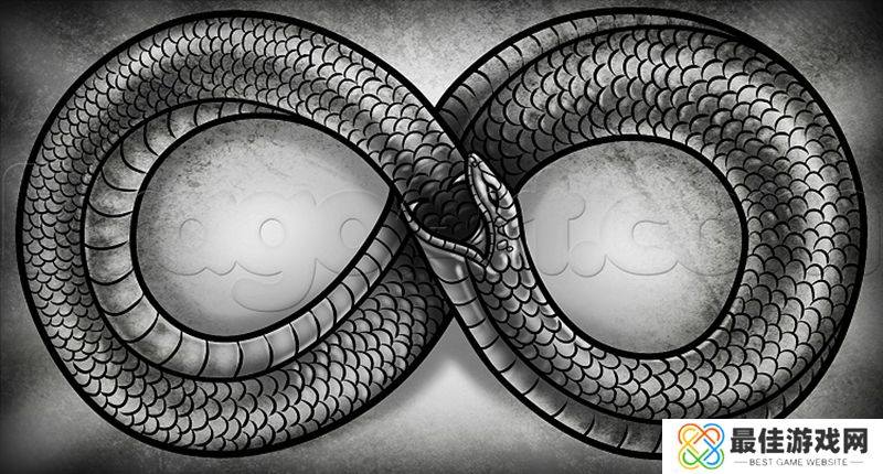 衔尾蛇是古埃及和希腊的象征性蛇,嘴里叼着尾巴,不断吞噬自己并从自己身上重生。