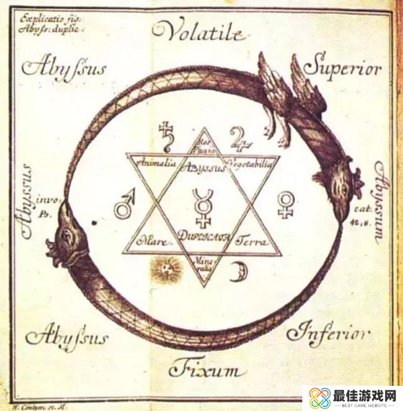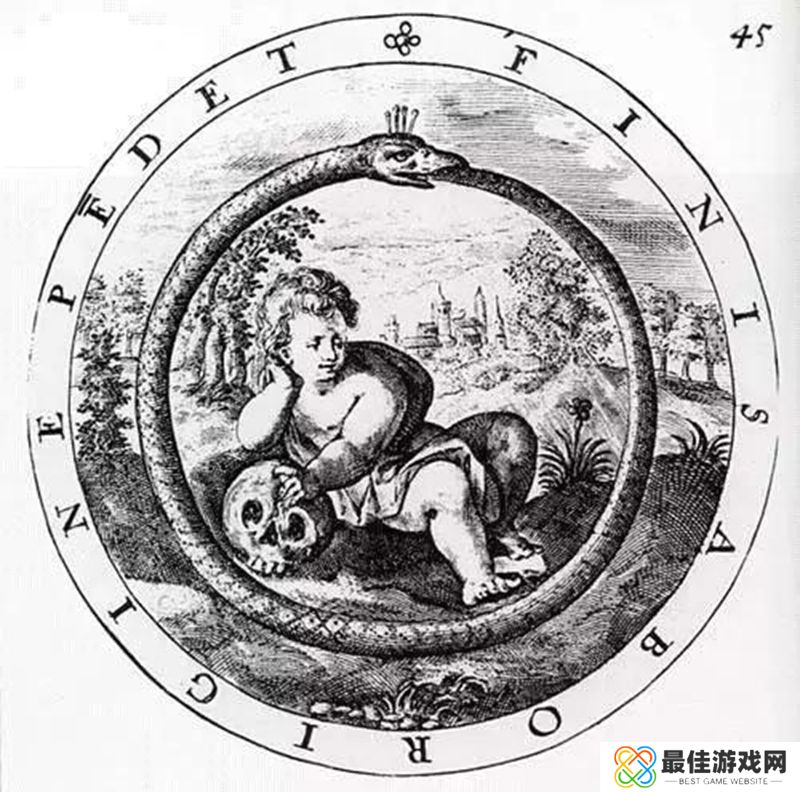 衔尾蛇是一种诺斯底主义和炼金术的符号,表达了所有事物的统一性,无论是物质的还是精神的,它永远不会消失,而是在毁灭和再创造的永恒循环中不断改变形式。