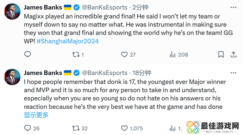 BanKs:我希望人们记住,donk只有17岁,是有史以来最年轻的Major冠军和MVP,这对任何人来说都是很难接受和理解的,尤其是当你还这么年轻的时候,所以不要讨厌他的回答或反应,因为他是我们比赛中最优秀的选手,他在新秀赛季就做到了别人从未做到过的事情!!