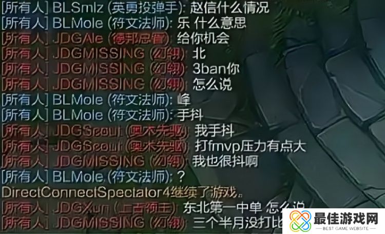 JDG和BL公屏对话 Scout:手抖 打FMVP压力有点大