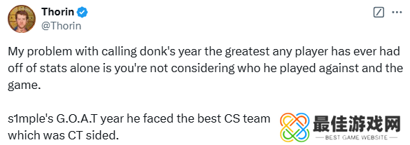 Thorin:donk还称不上GOAT,s1mple当年面对的是巅峰A队