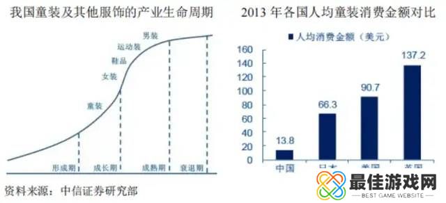 童装市场根据年龄和身高的不同,细分为0-1岁的婴儿装、1-3岁的幼儿装以及4-14岁的大童装。从产业视角来看,我国的童装行业仍处于早期成长阶段,具备增长速度快、集中度低、成长空间大的特点,大多数公司还在品牌化的道路上摸索前行。
