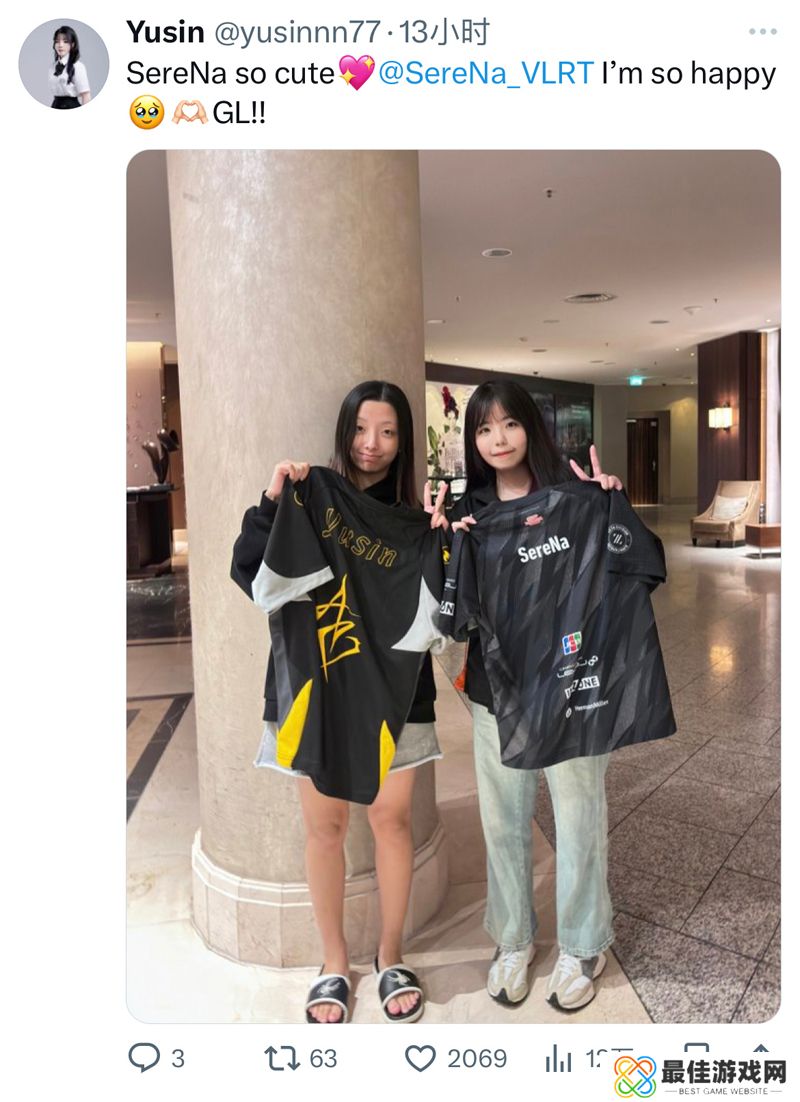 日前,在柏林参加改变者全球冠军赛的CN选手语芯Yusin,在社交平台晒出了与ZETA战队韩国选手SereNa的合照。