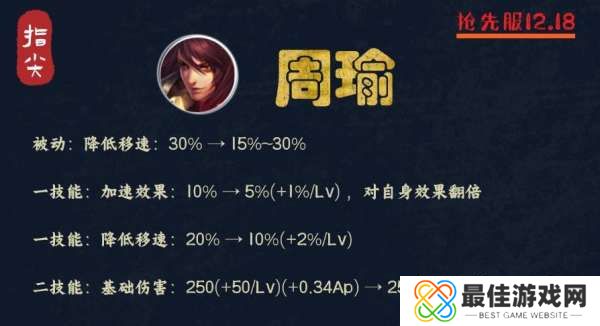 周瑜的这波调整其实也是类似的方向,首先,被动的减速不用管,所有英雄都削了,周瑜只是其中之一罢了。