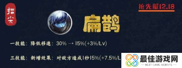 重点在于加速效果,1技能使用后对范围内队友进行加速10%,调整后变成了5%-10%,但新增了一个机制,那就是对自身翻倍。