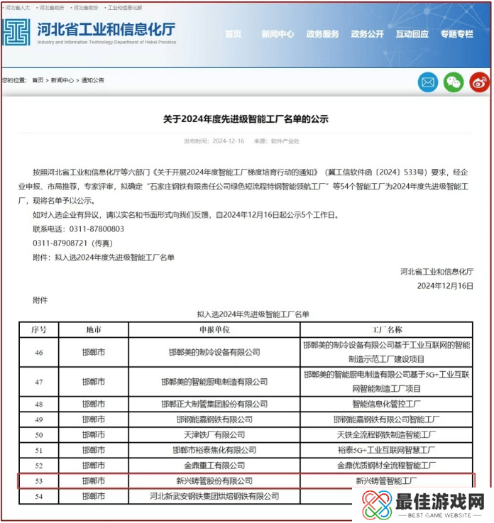 新兴铸管武安本级闪耀全省,荣登2024年度先进级智能工厂榜单!