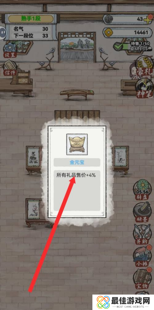 3、金元宝属于珍稀物品之一,消耗后能够使得礼品销售价格上浮4%。