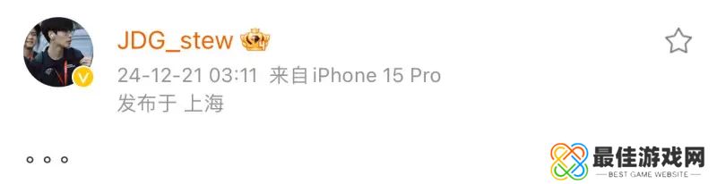 发生什么事了?stew深夜更新动态发步一串省略号。根据此前的爆料,JDG将在启点赛前发生人员变动。
