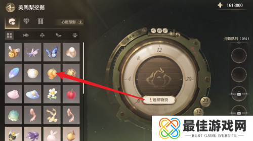 2、接着,在展开的菜单中选择“美鸭梨挖掘”功能。在此新界面中,沿着左侧的菜单挑选出您想要挖掘的资源,随后点击下方的“挖掘”按键。