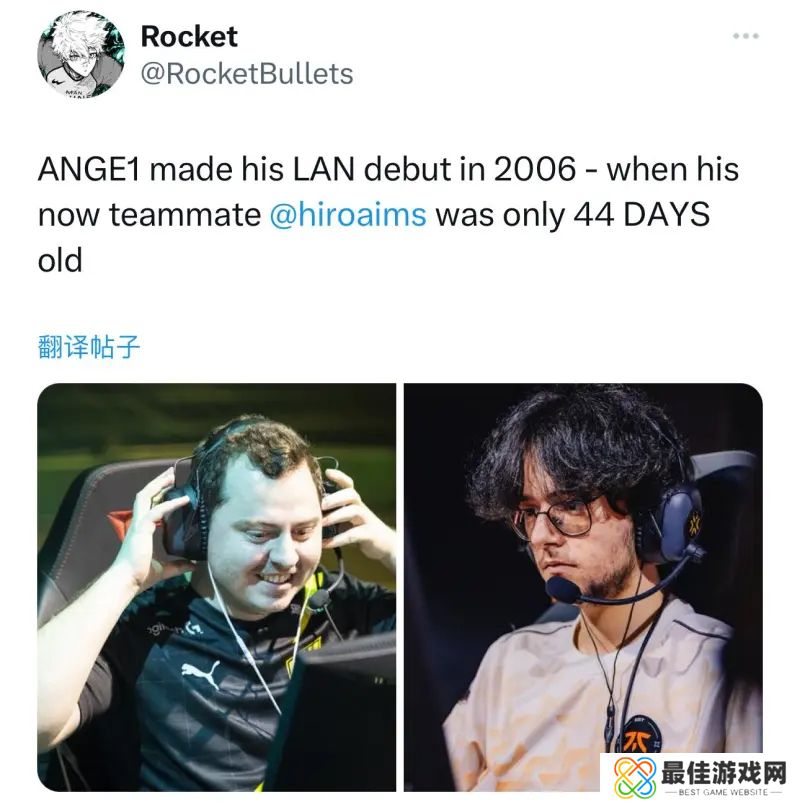 VCT EMEA赛区NAVI战队ANGE1在生涯线下赛首秀时队友hiro仅出生44天。
