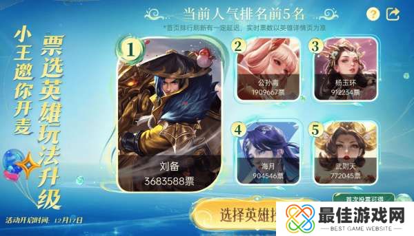 排在刘备之后的,分别是铠、赵云、梦奇、夏侯惇、娜可露露、雅典娜、阿轲、孙悟空和盘古。