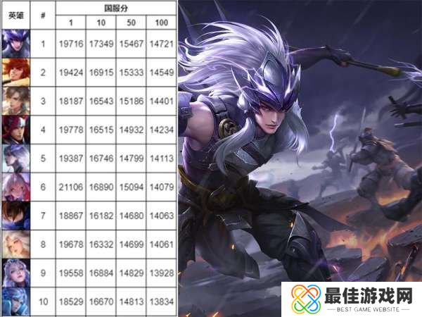因为国一平均战力达到了21106分,排名第二的韩信也只是接近两万分,这直接拉开第二名一千三百多分,就问你离不离谱。