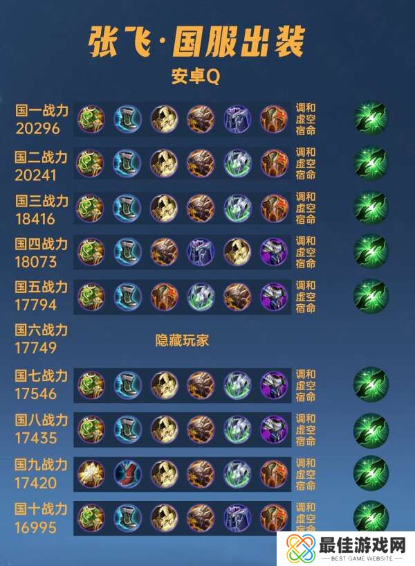 这篇文章我们来看一下40位国服张飞的出装铭文汇总。