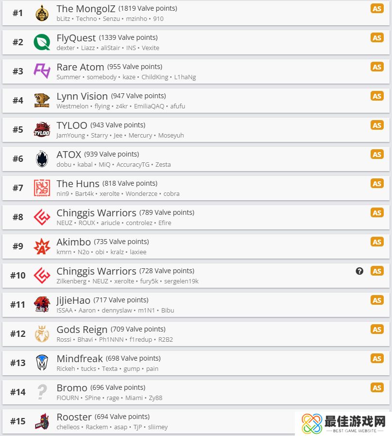 V社世界排名1219:G2仍居第一;MongolZ前三一步之遥