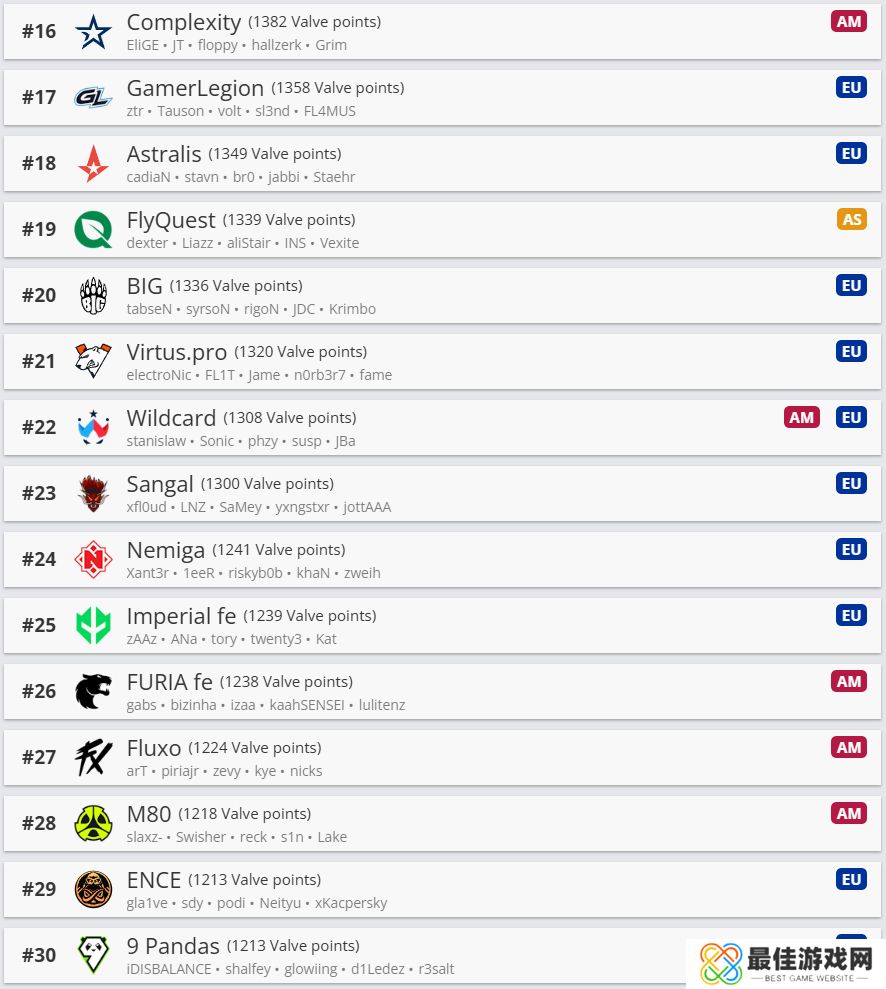 今天V社更新了旗下CS世界排名,这一世界排名会和明年的赛事邀请紧密联系,因此是主办方和战队都必须关注的内容。