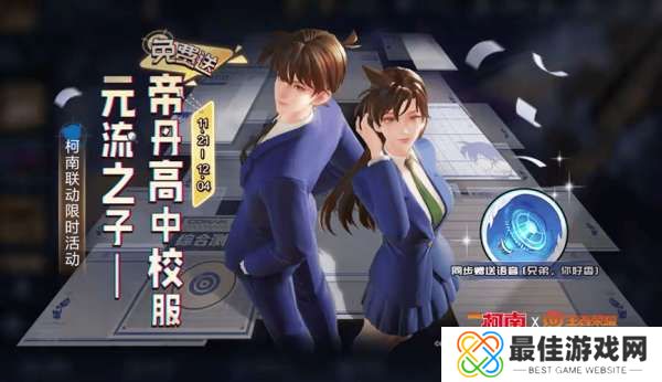 比如之前王者荣耀联动名侦探柯南的时候就给元流之子出了一套联动装扮,叫做帝丹高中校服,如下图所示。这套装扮在男性元流之子身上就是非常普通的西装西裤,看起来稀松平常。但是穿在女性元流之子身上,看起来就和柯南里面的毛利兰一样,不仅所以是毛利兰经常穿的,发型也还和毛利兰完全一样,完全可以看做是毛利兰的联动皮肤。