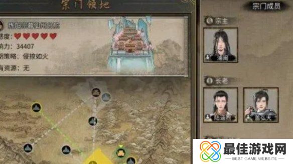 9、在宗门领地中,可以看到所占领的资源点和其他宗门,点击宗门发起宗门战,积累一定名誉后,可以扩张领地。