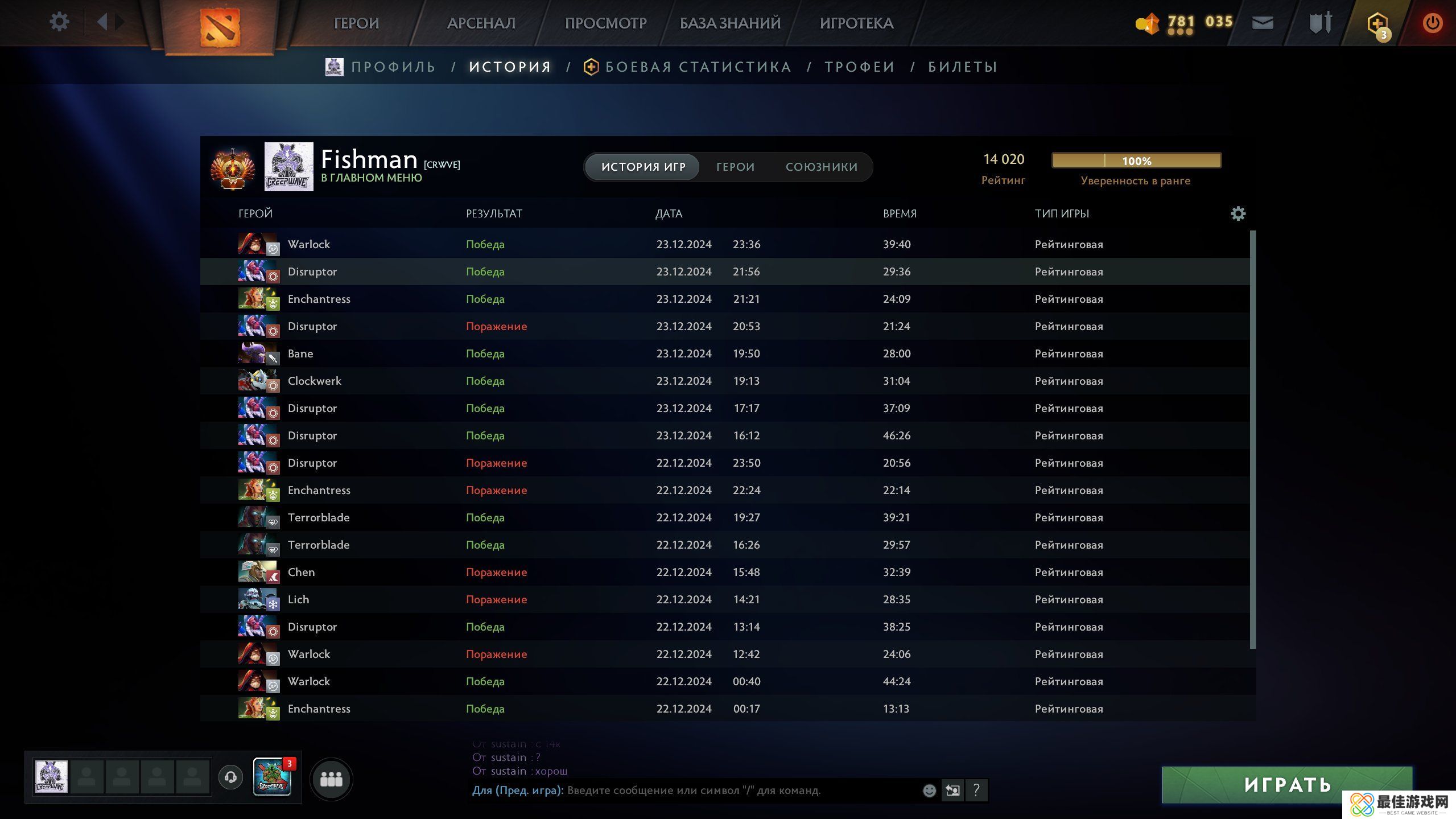 Fishman的Dota2天梯积分达到了14000