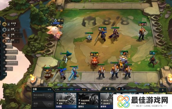 5-5左右上8,用盖伦换任意除吸血鬼以外的低质量监察棋子,安蓓萨换艾克,补娜美开2法师,组成标准阵容。如果没有盖伦/安蓓萨开不出4外交,可以先用4炮手或者兰博+哨兵
