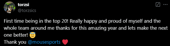 在刚刚HLTV发布了本年度最佳选手TOP20的获奖者是torzsi后,拖哥也是立刻发布了动态分享自己的获奖感言。“第一次进入前20名!我真的很高兴,也为我和身边整个团队深感自豪。感谢这美好的一年,让我