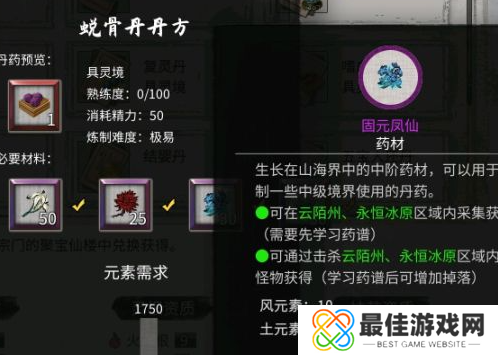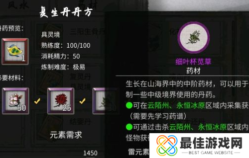 14、培元丹:玄灵液×50、大蓟根茎×30。