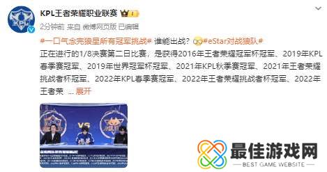 虎扑12月27日讯 KPL官方发文:一口气念完狼星所有冠军,谁能出战?