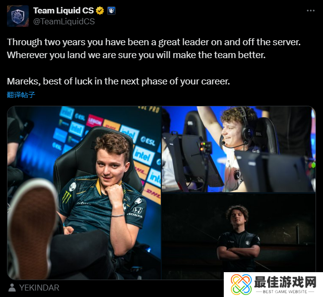 Mareks(YEKINDAR),祝福你接下来的职业生涯一切顺利。”
