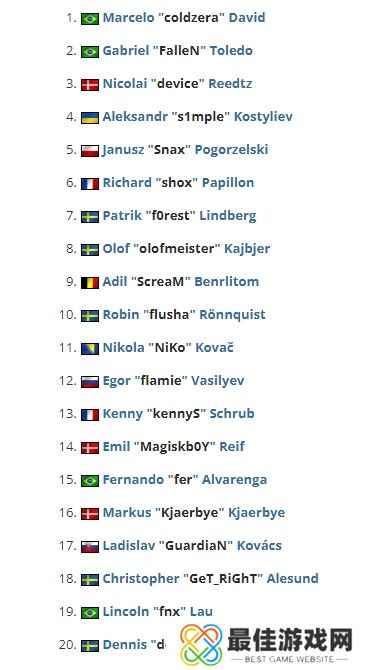 以下为2016年HLTV 年度最佳选手Top 20名单: