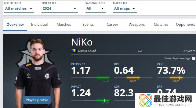 综合数据来看,NiKo入选2024年HLTV年度最佳选手Top 20榜单只是时间问题,届时他将连续9年入选Top 20。