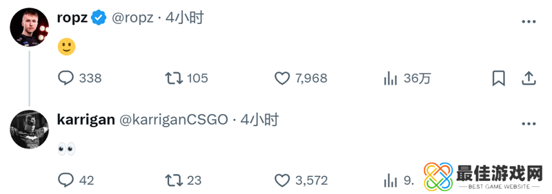 FaZe指挥karrigan也在评论中发布了“眼睛”的表情,ropz本人则也回复了同样的表情。