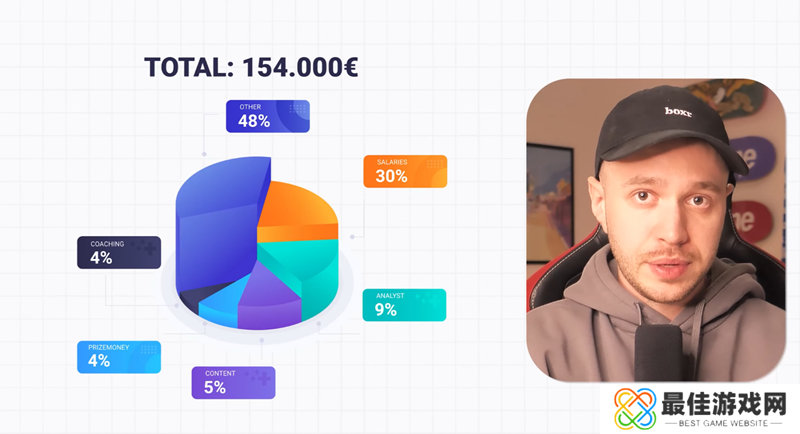 其中工资占比约30%,赛事奖金4%,内容创作5%,教练和分析师分别占比4%和9%。他的收入大头来自于工资和其他杂项收入,两者占据他收入来源的78%。