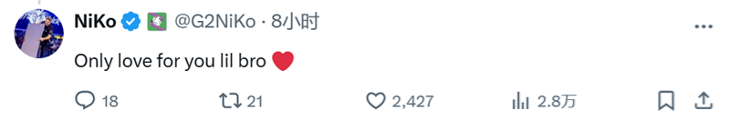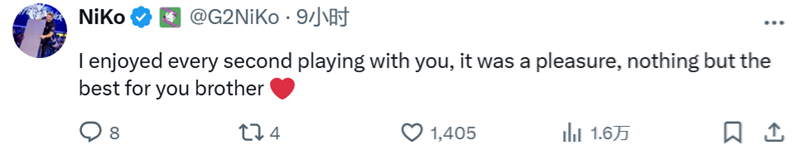 NiKo回复G2前队友:孩,对你只有爱