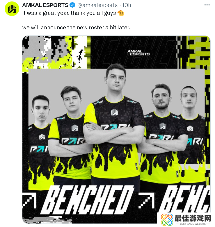 AMKAL战队在社交平台官推上宣布下放队内所有选手至替补席。