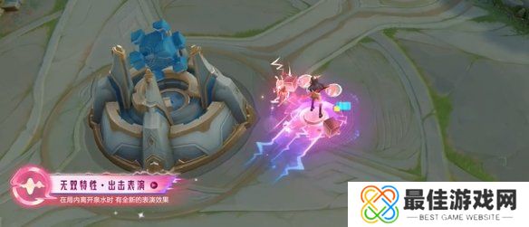 1、「出击表演」:在局内离开泉水时,有全新的表演效果,甜酷DJ随律动摇摆,粉色鹿灵环绕音波舞台伴行;首次离开泉水有10秒表演效果,后续每次离开泉水均有5秒表演效果;