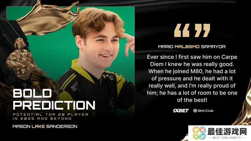 Mario Samayoa | malbsMd看好的是来自于美国的选手Mason Sanderson | Lake,后者目前效力于M80战队。早些时间HLTV公布了2024年度最佳选手排名,malbs
