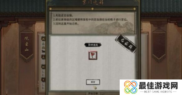 5、选择地点:带着定岳旗前往赤幽州,使用定岳旗确定迁移地点。