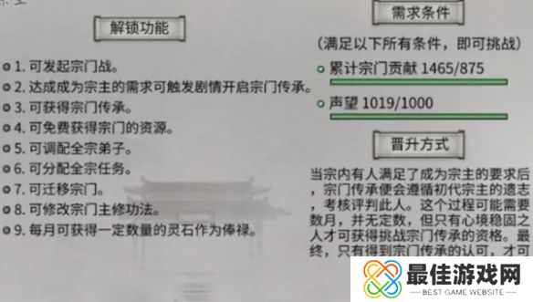 1、成为宗主:只有宗主才有资格搬迁宗门。