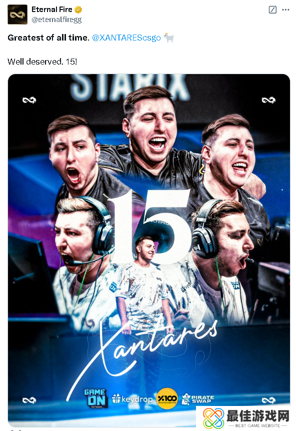 Eternal Fire官推:GOAT XANTARES。实至名归的TOP15!