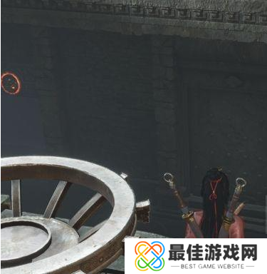 4、拉动拉杆后开门,立即射箭,跳下去用金玉手对准门上的玉开门。