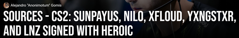 签约阵容和之前的爆料基本一致。今天外媒Sheepesports表示根据消息源,SunPayus、nilo,以及Sangal三人组LNZ、xfl0ud和yxngstxr已经和HEROIC完成签约工作。考