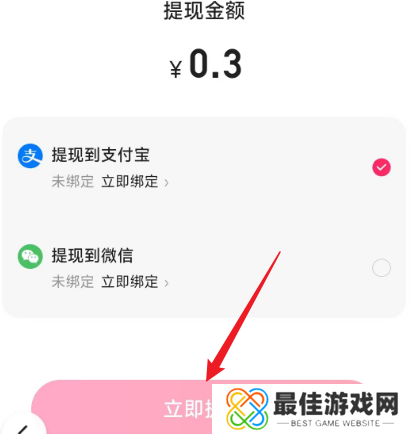 4、选择绑定微信或支付宝账号,并点击下方的【立即绑定】进行操作,最后点击【立即提现】按钮即可。