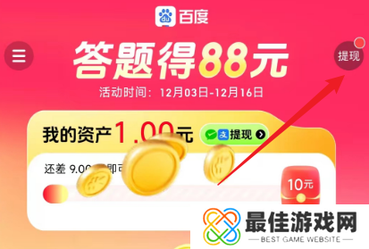 2、进入活动界面后直接点击右侧的【提现】按钮。