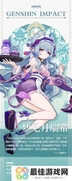 原神梦见月瑞希即将上线,玩家可以在相关角色祈愿中使用纠缠之缘抽取获得,由于部分小伙伴对具体的培养攻略还不太了解,接下来就和小编一起来看看吧。立绘 | 配队 | 突破材料 | 武器 | 圣遗物 | 技能