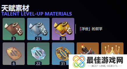 提升为7级:浮世的哲学*4、名刀镡*4、残火灯烛*1、120000摩拉