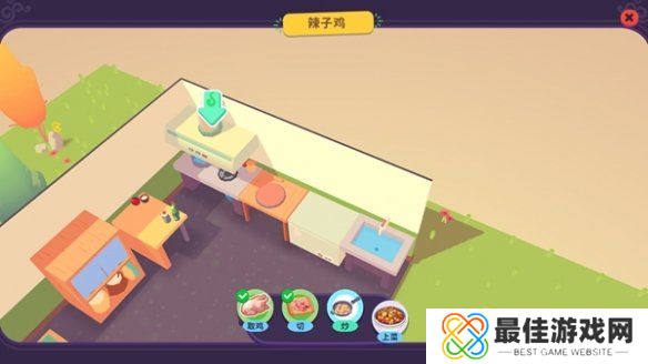 烹饪环节:轻点顾客头上的气泡,便会转入烹饪界面,选中恰当的炊具便可以开始烹调,结束后点击上菜选项,即可完成服务流程。