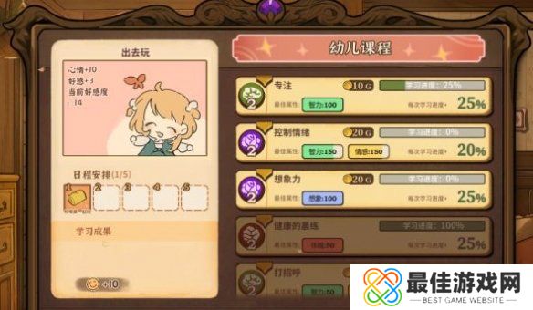 2、每门课程的学习进度达到100%就能完成,然后达到最佳属性还能增加25%的进度。