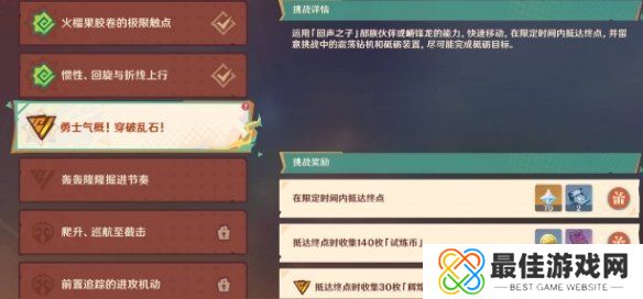 原神衔勇诚砺之证第三关怎么过,玩家只需在规定时间内到达终点就能获得对应的奖励,然后收集一定数量的试炼币还能领取额外的道具,下面小编将为大家详细介绍一下,感兴趣的小伙伴一起来看看吧。