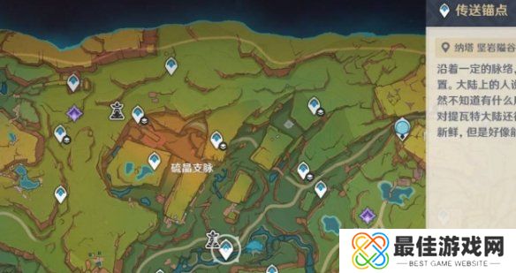 1、首先玩家需前往图中位置,到达传晶支脉右下方的传送锚点后往北走。