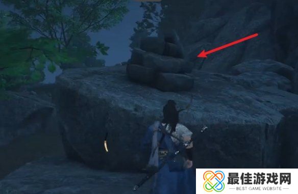 9、上来后,即可看到石堆,击碎即可获得蹊跷。